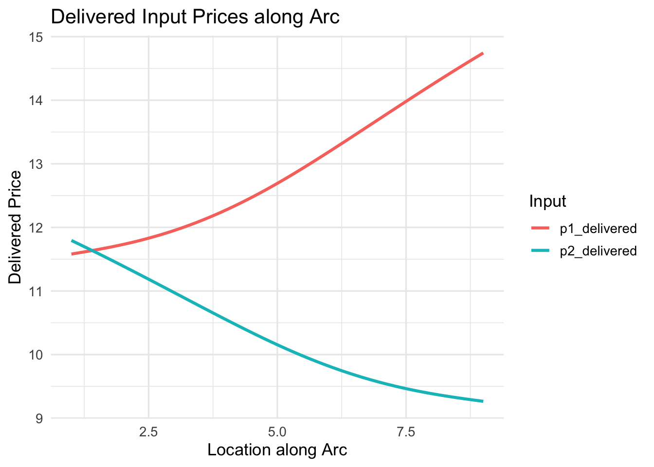 labs(title="Delivered Input Prices along Arc",