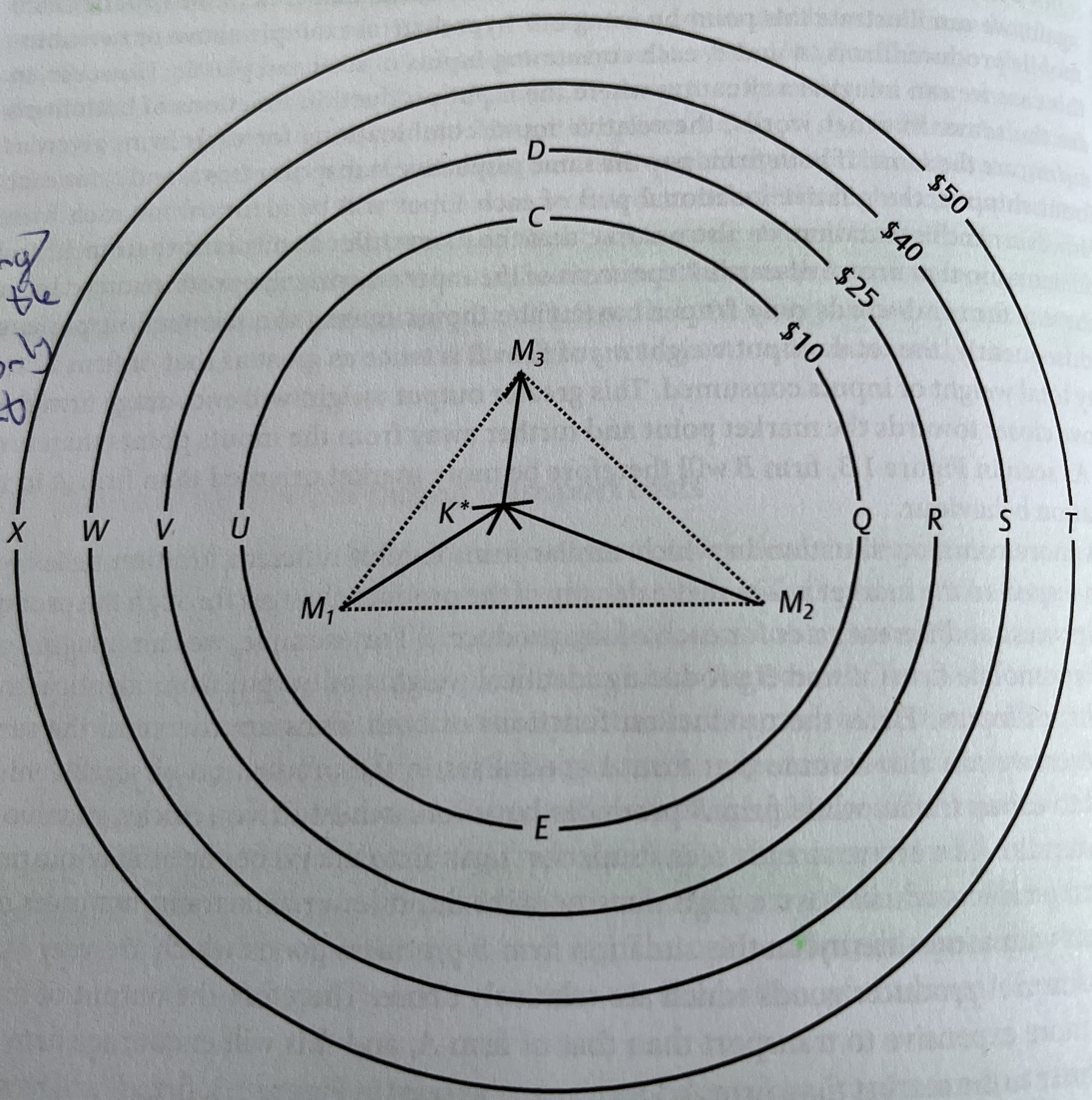 The firm is still consuming inputs from \(M_1\) and \(M_2\), and still shipping output from \(K^*\) to \(M_3\). Under these conditions, we know that the Weber Optimum is \(K*\); the implication being that if all factor prices are equal across space, then \(K^*\) is also where the firm will locate in the end.